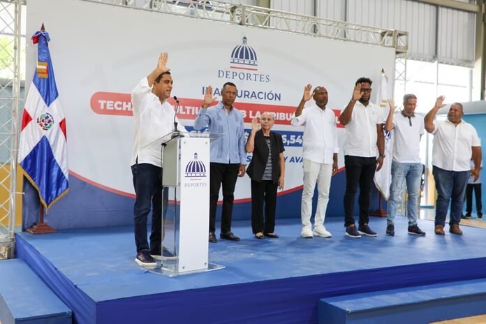 Acto seguido, el ministro de Deportes juramentó el voluntariado del Club La Tribu, integrado por hombres y mujeres de la comunidad que asumirán la responsabilidad de velar por el buen uso, mantenimiento y dinamización de la nueva instalación deportiva y convertir este espacio en un verdadero centro de formación, disciplina y convivencia sana para la juventud de La Romana.