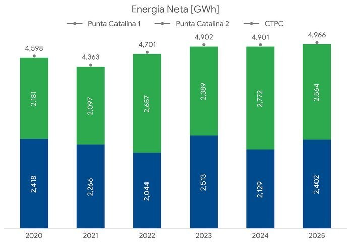 Los datos de producción acumulada del período 2020-2025 muestran una trayectoria sostenida que va de los 4,598 GWh registrados en el primer año de operación hasta el techo alcanzado el año pasado, con un mínimo de 4,363 GWh en 2021 que los propios registros técnicos de la planta atribuyen a ajustes de rodaje del sistema.